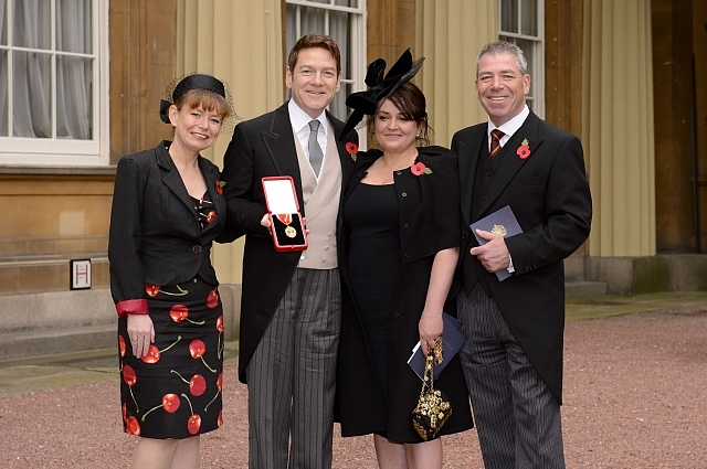 | Kenneth Branagh being named Knight Bachelor for services to drama and the community of Northern Ireland, Buckingham Palace, 9 November 2012 |